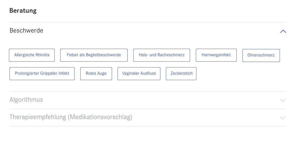 Aufgrund dieser Gesetzesänderung wurde «Documedis» erweitert. In dieser neuen Komponente ist ein Beratungsfragebogen (Abgabe-Algorithmus) eingebettet, der die Apotheker/innen bei der Beratung unterstützt. Zusätzlich dient er als Grundlage für die vorgeschriebene Dokumentation des Beratungsprozesses und der Medikamentenabgabe.