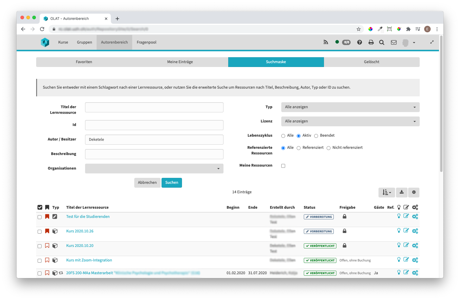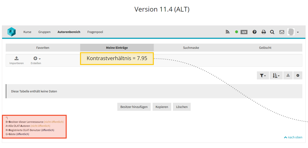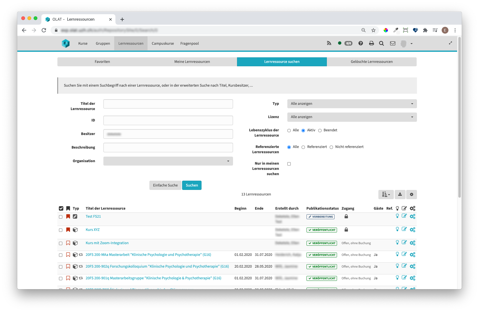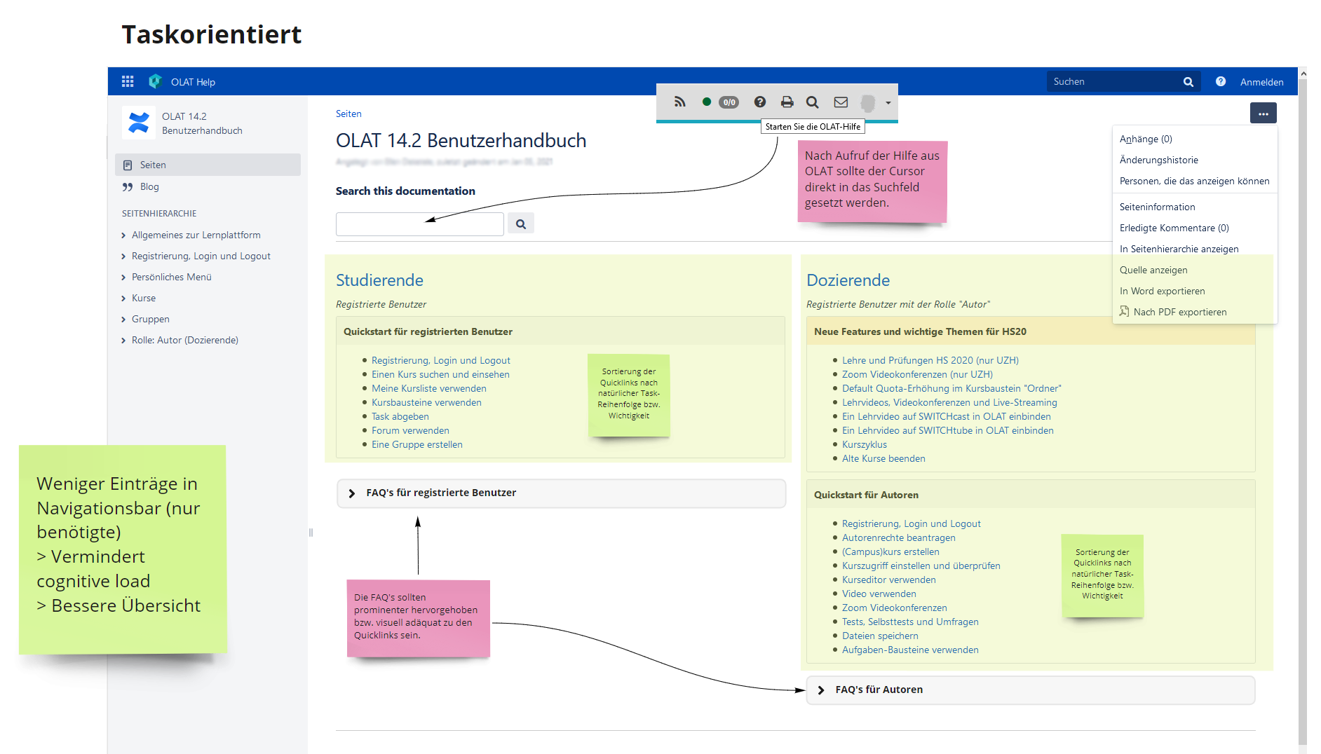 In diesem Fall einigten wir uns mit der UZH darauf, eine Expertenbeurteilung einer empirischen Untersuchung vorzuziehen. Gründe dafür waren nebst dem sehr engen Zeitrahmen die Möglichkeit, bislang nicht adressierte Usability-Probleme in anderen Bereichen des Systems aufzudecken sowie ein Gesamteindruck bezüglich der «Evolution» von OLAT im Sinne der Benutzerfreundlichkeit zu erhalten.
